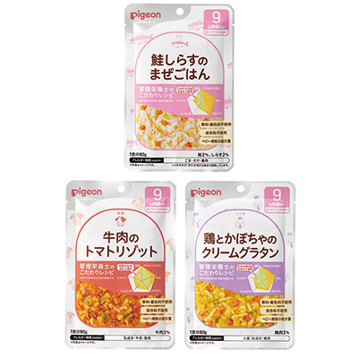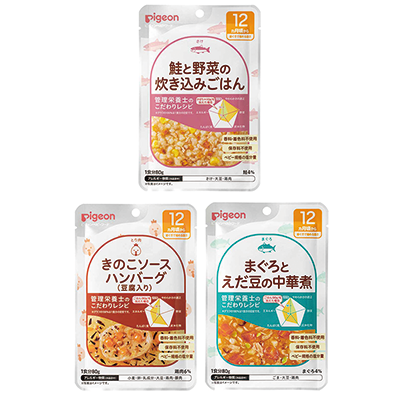 ●9ヵ月頃からの赤ちゃんのかむ力の発達に合わせて、具材の大きさや固さを調整しています。